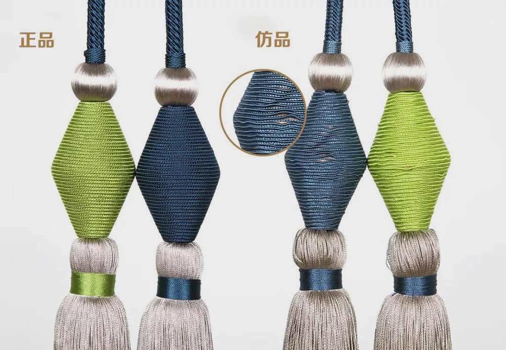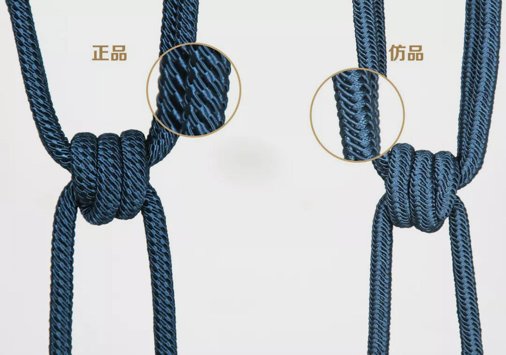 在一些款式上,為體現特定的光澤感和精致度,東立正品使用兩根包繩結構,色彩更有表現力,而仿品并不在意細節(jié),只有單跟包繩,色澤暗淡。