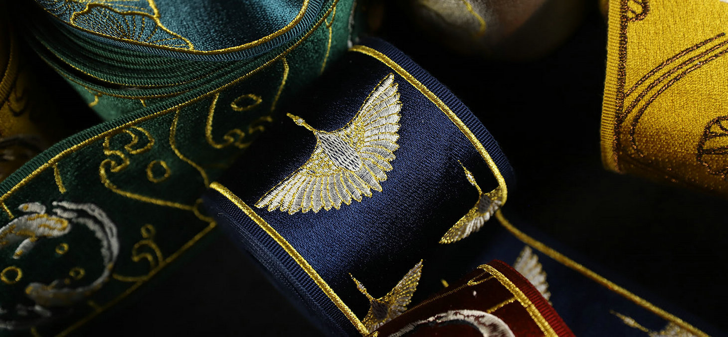 鎏金閣系列產(chǎn)品將傳統(tǒng)元素與摩登時尚的新設計相融合,以緞紋底帶呈現(xiàn)華貴光感,展示新中式的時尚與富麗堂皇。